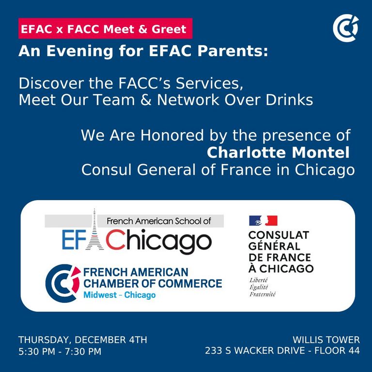 An evening for EFAC parents: discover the FACC, connect over drinks — honored by the presence of Charlotte Montel, the new Consul General.