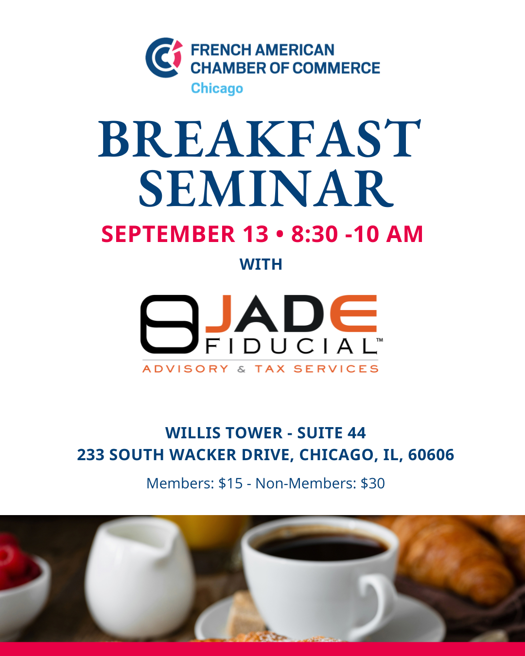 Simon Bourneuf is the Branch Manager at Jade Fiducial in Chicago. This breakfast seminar will be the opportunity to address our Tax current issues, and to network with like-minded people.