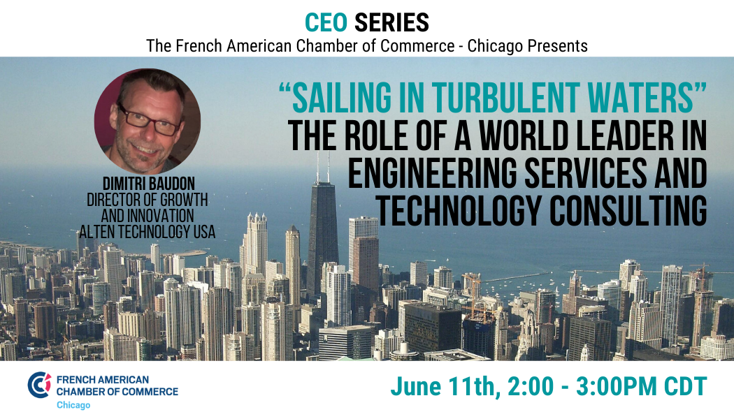 Participate in our interactive CEO Series! Dimitri Baudon, Director of Business Growth and Innovation at Alten, will discuss how a world class Engineering services and Technology Consulting firm is navigating through the storm towards calmer waters.