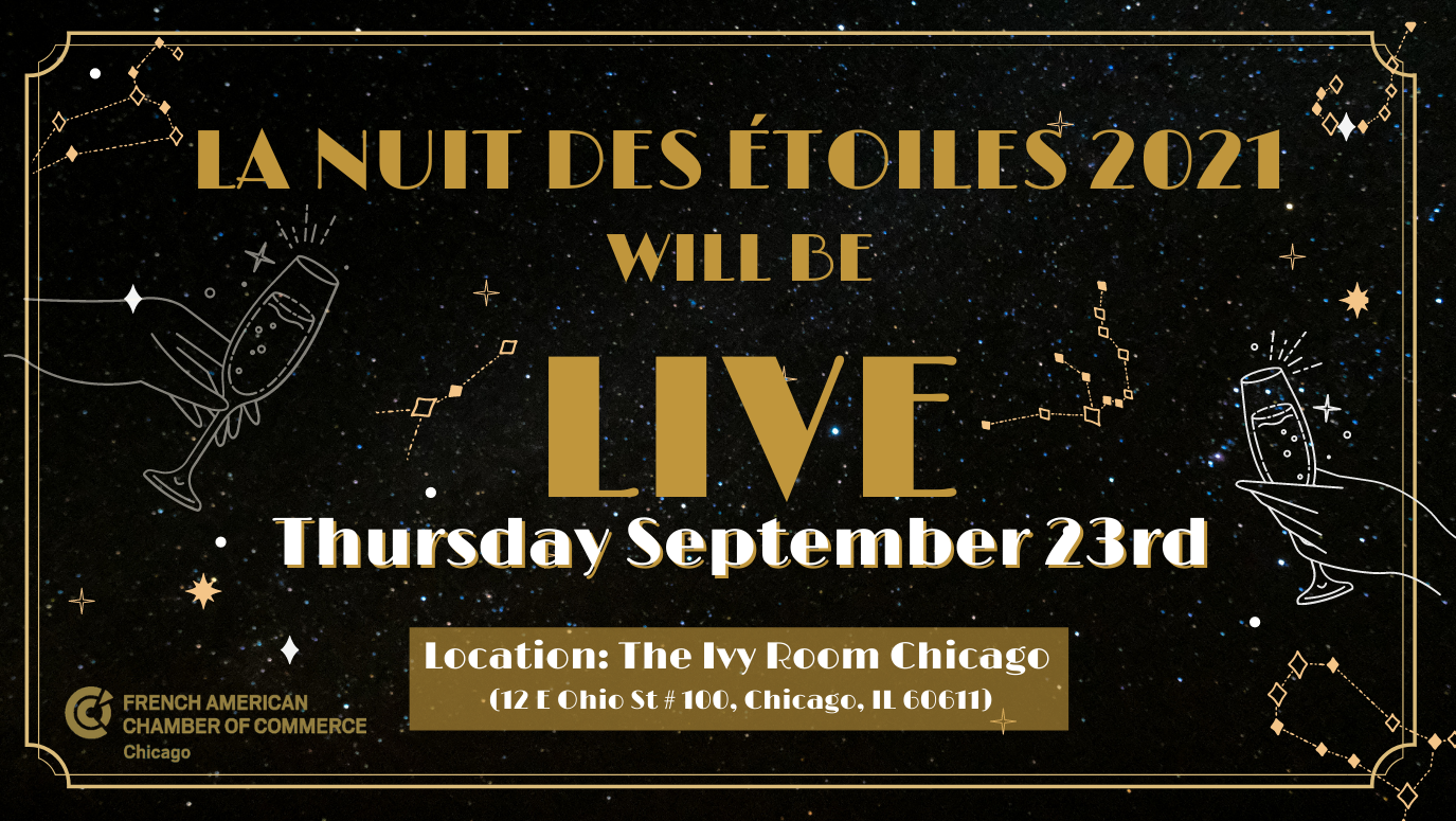 La Nuit des Etoiles will be held in person this year on Thursday, September 23rd at the Ivy Room! Safety precautions will be in place.
