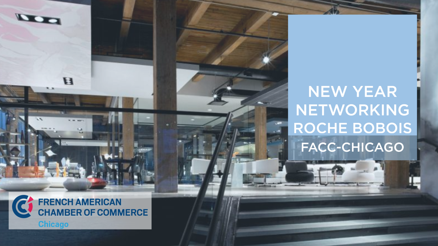The French-American Chamber of Commerce of Chicago is thrilled to welcome you to Roche Bobois for our exclusive FACC-Chicago MEMBERS ONLY New Year Networking event! This is the perfect opportunity to grow your network within the French-American business community and enjoy the beautiful Roche Bobois showroom located in River North.