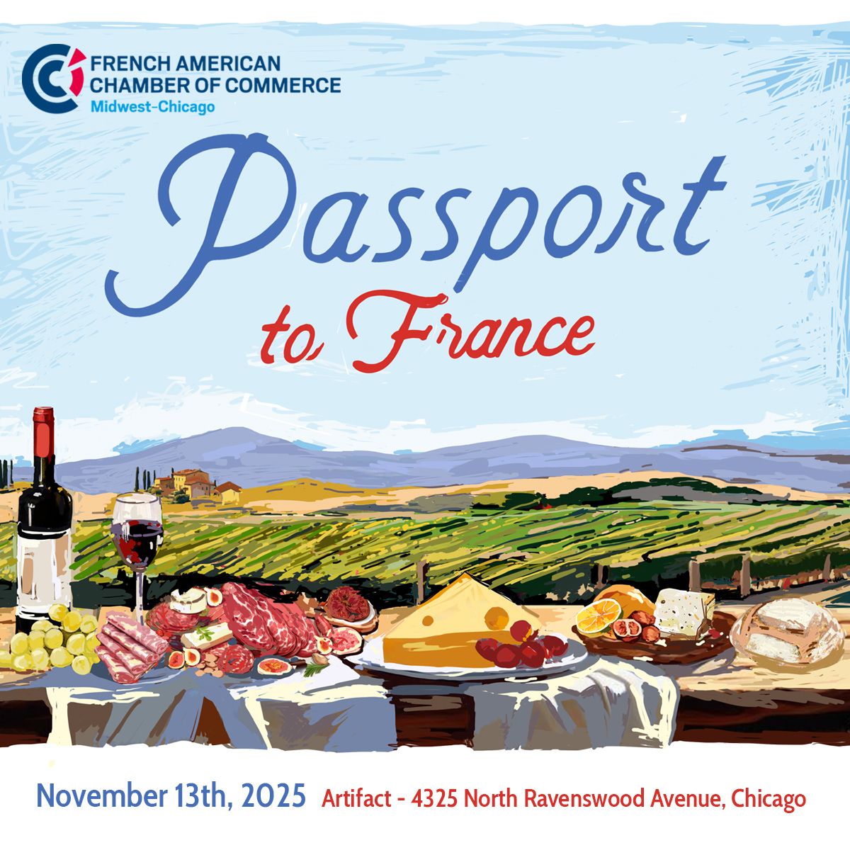 Passport to France is back on Thursday, November 13, 2025, at ARTIFACT—Chicago’s beautifully renovated industrial loft space. Join the French-American Chamber of Commerce for our signature celebration of French gastronomy and savoir-faire.