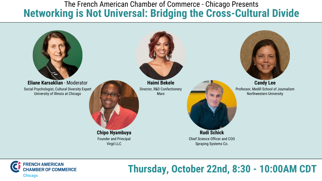 Networking with people from different backgrounds and cultures can be challenging. Culture is defined as a homogeneous system of collective meanings, ways of life and unifying values. Join our panel for a discussion about networking best practices across countries, genders, generations and industries. You will leave this event with tips on how to successfully network in a cross-cultural environment.