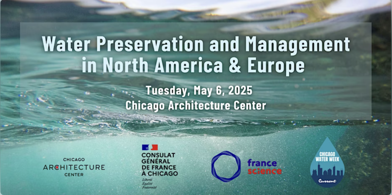 Join us for a conference on water preservation and innovation, led by the Consulate General of France in Chicago and France Science. Held on Tuesday, May 6 at the Chicago Architecture Center, the event features interactive roundtables and a general session exploring sustainable solutions. It's a unique opportunity for community members, researchers, and industry leaders to engage in meaningful dialogue on water management. The conference is organized in partnership with the French-American Chamber of Commerce Chicago, French Tech Chicago, the Lycée Français de Chicago, and the CCEs.